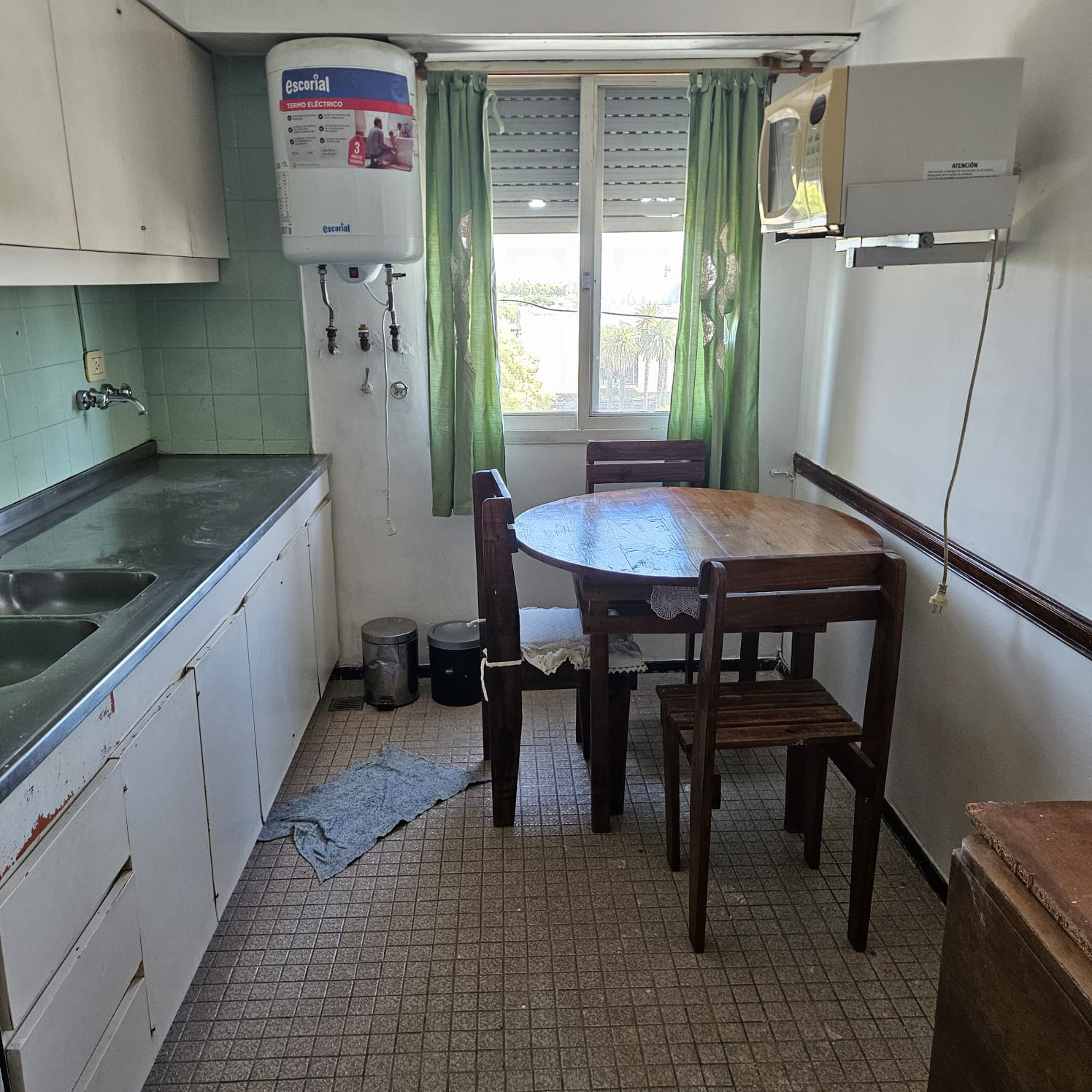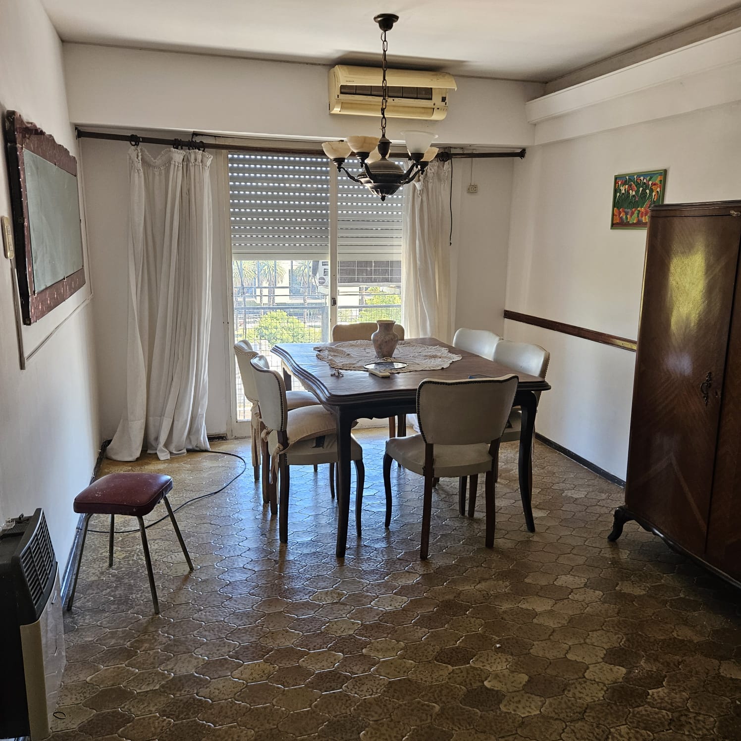 Amplio departamento de un dormitorio. Living comedor. Cocina separada. Baño. Contrafrente. Luminoso. Calefactor. Aire acondicionado. Ventilador de techo.